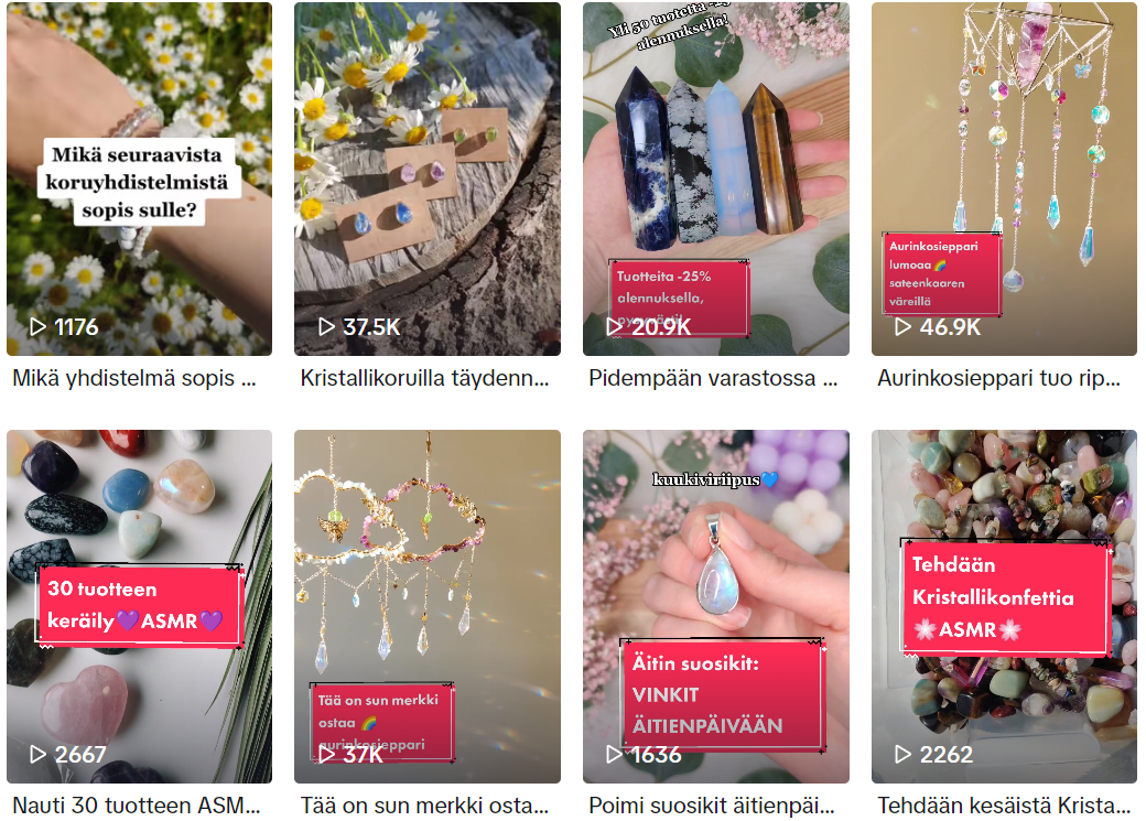 "Halusin vain kiittää, kun muistit vielä syksyllä tilaamani mysteerisetin (iso kiitos myös siitä, oli mieluisat ja selvästi ajatuksella valitut kivet). Ihanaa kun joku jaksaa panostaa pakettien estetiikkaan ja vieläpä huomioi asiakkaita tarroin ja käsinkirjoitetuin viestein. Harvinaisen ystävällistä palvelua ja muutenkin kaikki viimeisen päälle kunnossa."