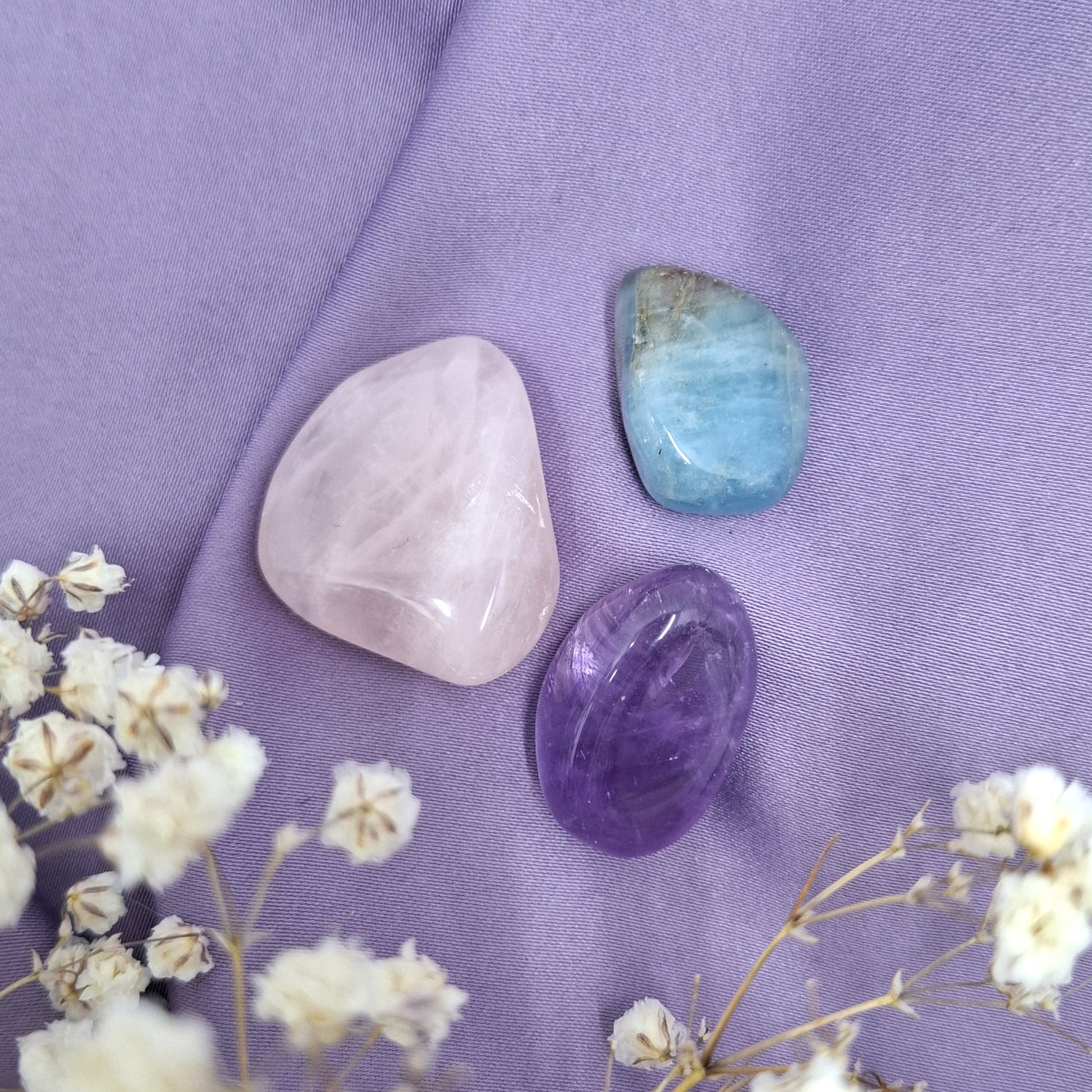 Sisältää 3 kpl kalat-horoskoopille sopivia kiviä: akvamariini, ametisti, ruusukvartsi. Korostavat merkin hyviä ominaisuuksia ja tyynnyttävät heikkouksia.