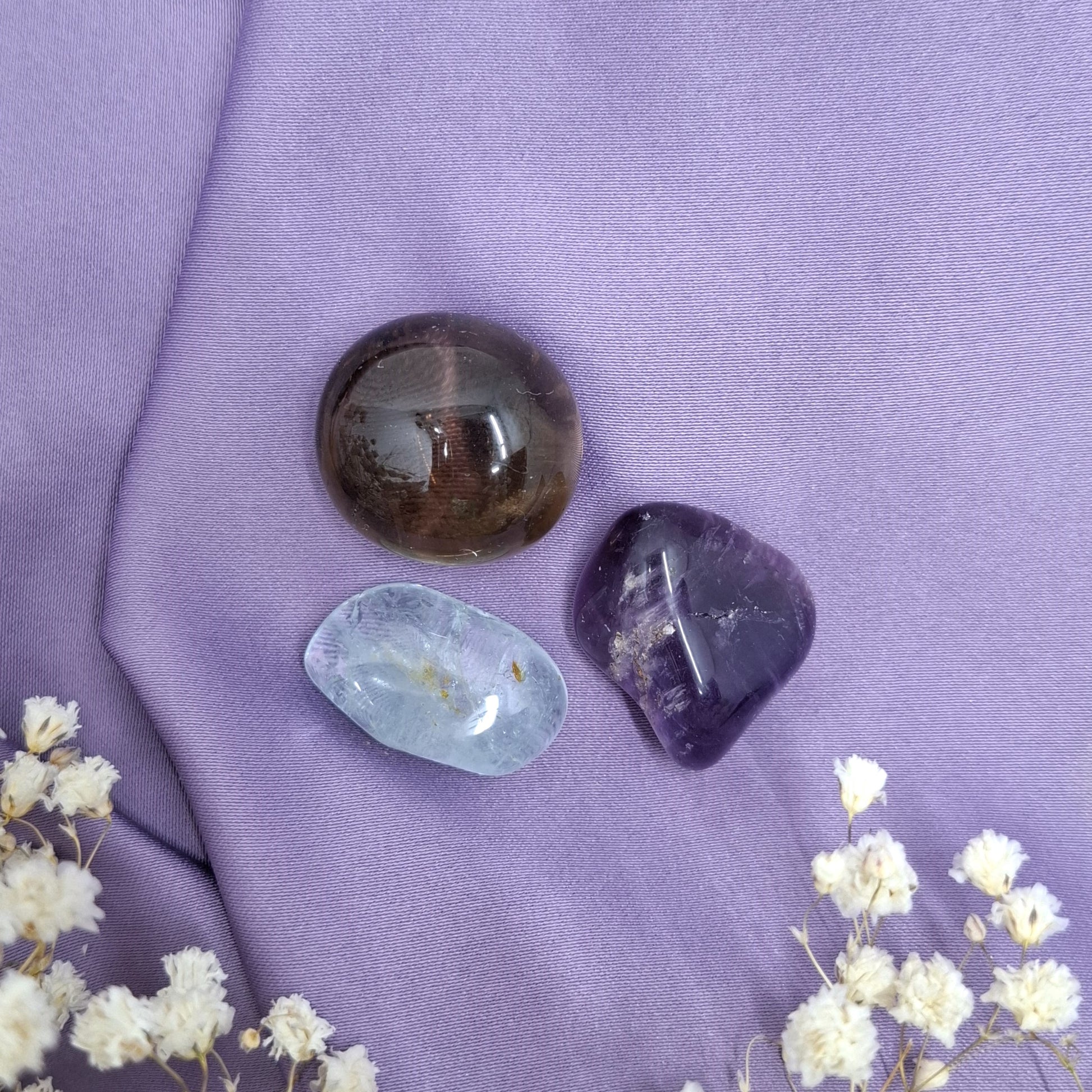 Sisältää 3 kpl skorpioni-horoskoopille sopivia kiviä: topaasi, savukvartsi, ametisti. Korostavat merkin hyviä ominaisuuksia ja tyynnyttävät heikkouksia.