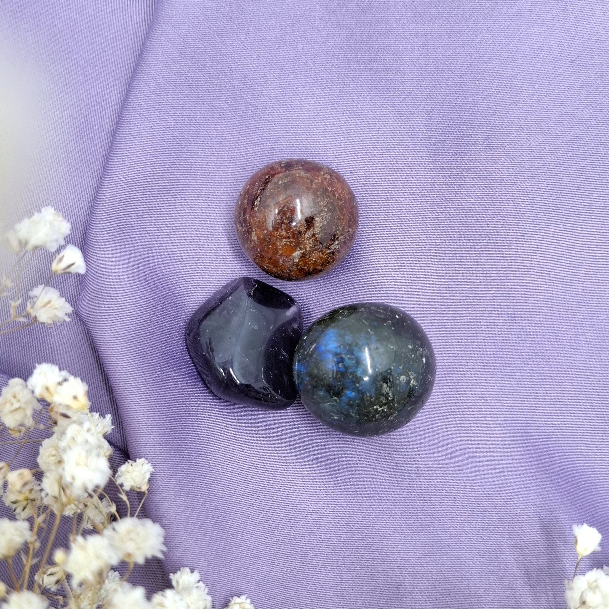 Sisältää 3 kpl vesimies-horoskoopille sopivia kiviä: granaatti, ametisti, labradoriitti. Korostavat merkin hyviä ominaisuuksia ja tyynnyttävät heikkouksia.