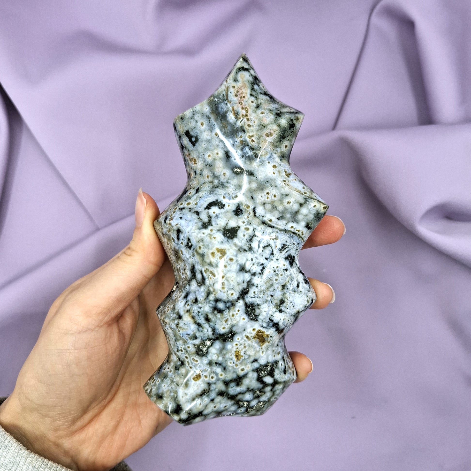 Tästä syystä kiven pinnassa saattaa esiintyä epätasaisuutta, kuten reikiä tai lohkeamia. Jos tämä ei ole sinulle ok, ethän osta tuotetta ennen kuin olet varmistanut info@ametistikissa.fi, onko sileää yksilöä tarjolla.